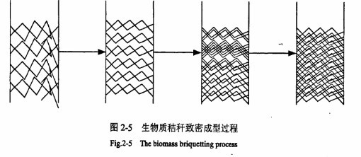 圖為生物質致密成型過程示意圖,經過連續的擠壓過程沒無聊的密度逐漸增大。