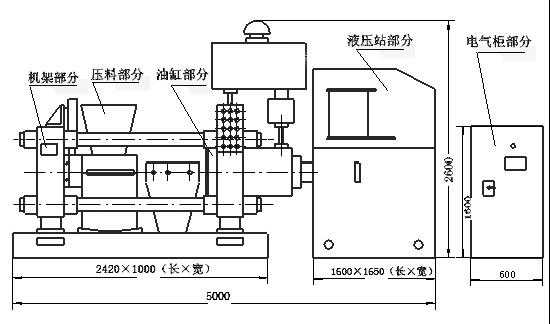 1、主機:主液壓缸、布料液壓缸、脫模液壓缸、模具、機體。